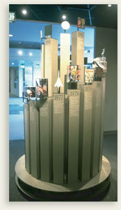An international traveling exhibits program was developed to tour selected Intel Museum content to other Intel sites. Each exhibit was a snap-together component that traveled in one or two anvil cases and could be assembled by one person in less than an hour. Concepts were also developed to tour complete museum content, from self-contained walk-through truck exhibits to a fully crated and shipped museum-to-assemble with permanent museum quality interactive exhibits and graphics.